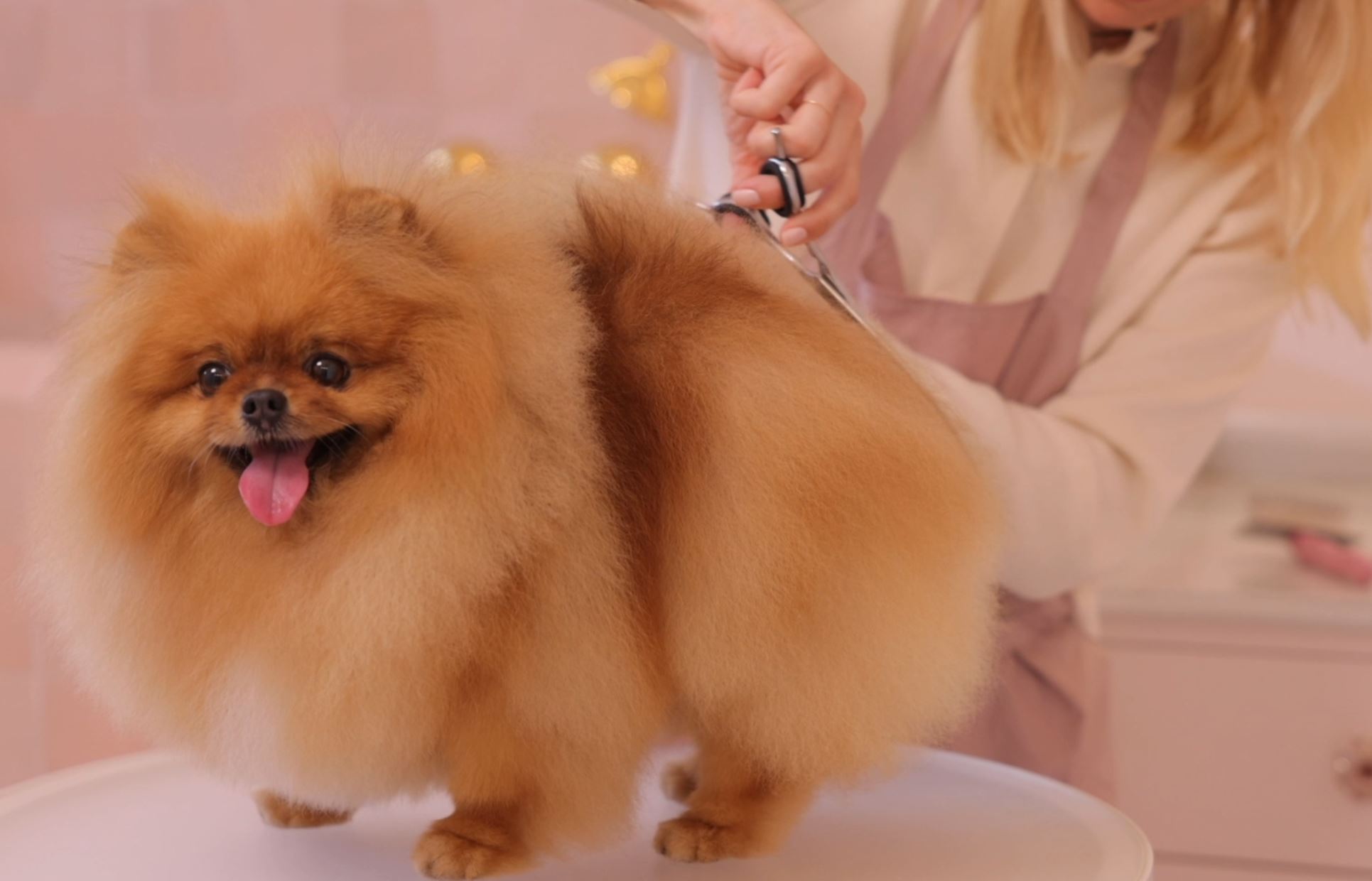 La corona, si nos lo permite nos armará todo el perro. Y el faldón bien cortado hará verse al Pomerania más cortito.